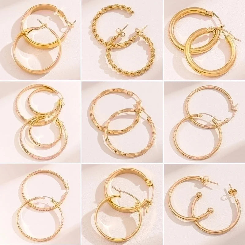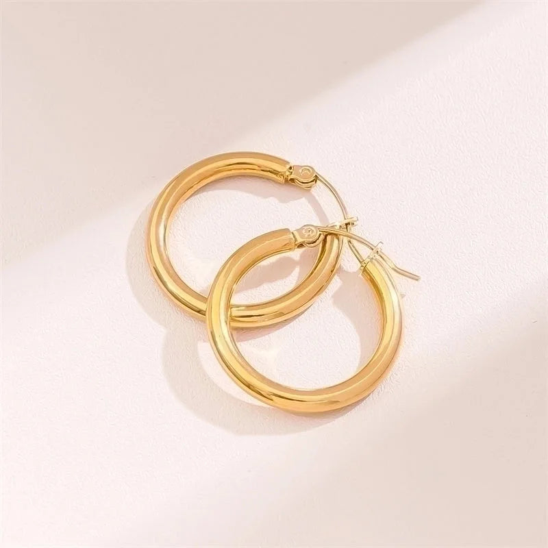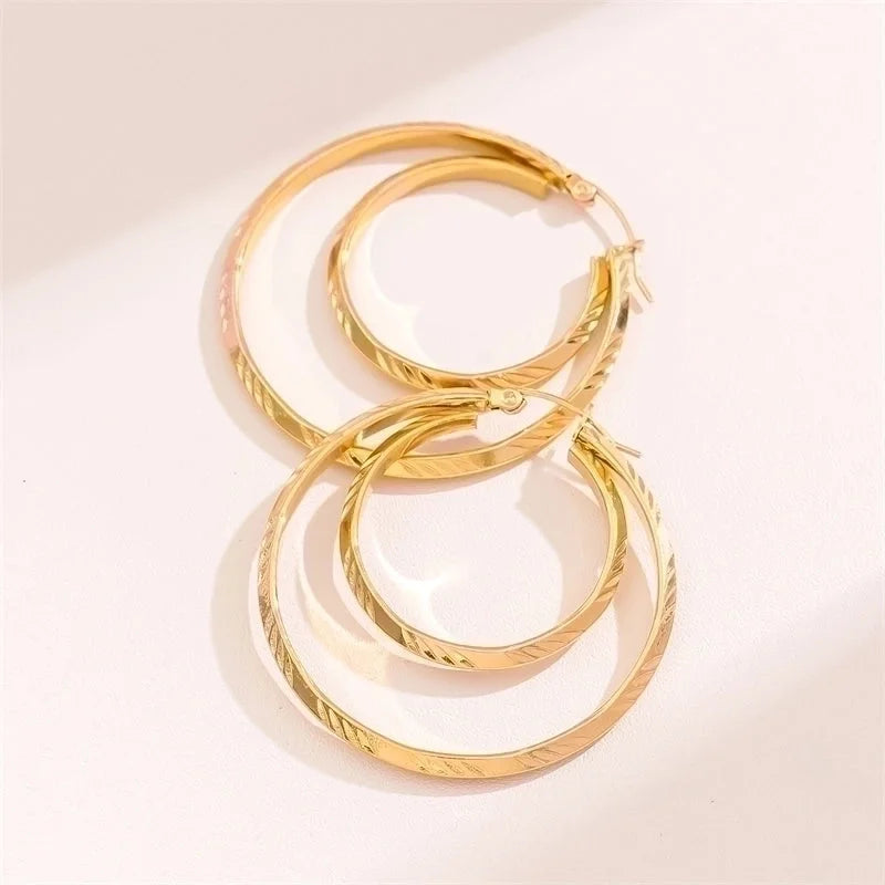 2 Pieces Retro Minimalist Round Waves Plating 201 Stainless Steel 18K Gold Plated Hoop Earrings