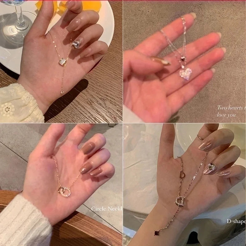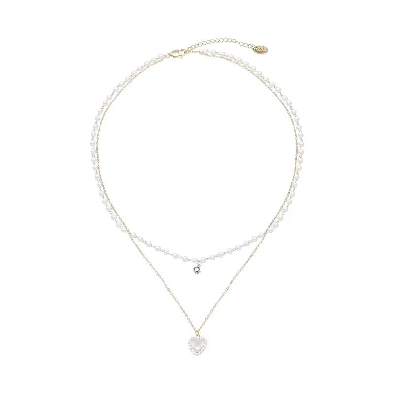Fashion Heart Shape Titanium Steel Beaded Zircon Layered Necklaces 1 Piece