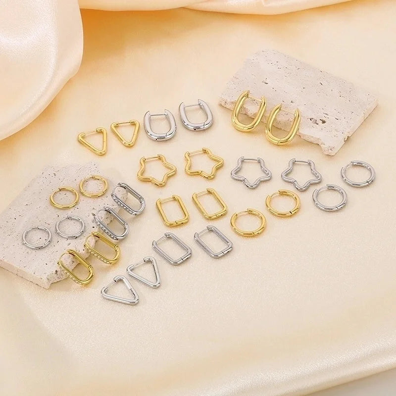 1 Pair Basic Minimalist Classic Style Geometric Star Solid Color 304 Stainless Steel 18K Gold Plated Hoop Earrings