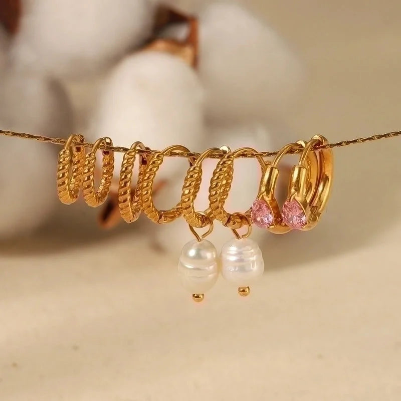 1 Pair Casual Minimalist Streetwear Twist Plating Inlay 304 Stainless Steel Zircon Earrings