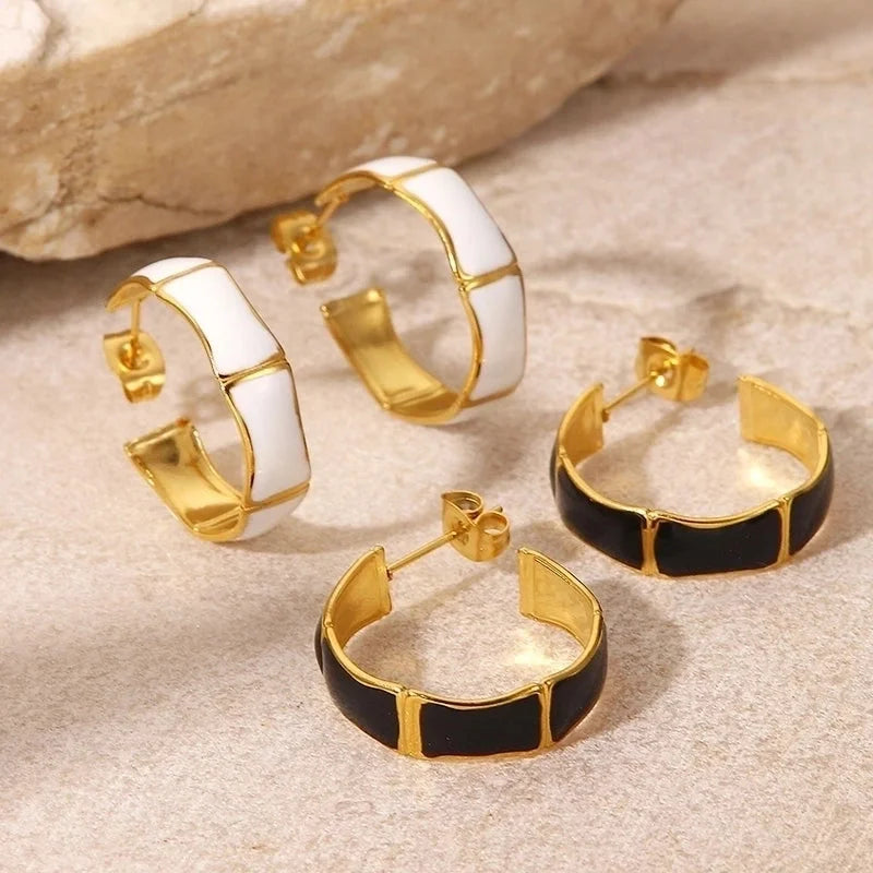 1 Pair Classic Style C Shape Enamel Plating 304 Stainless Steel 18K Gold Plated Ear Studs