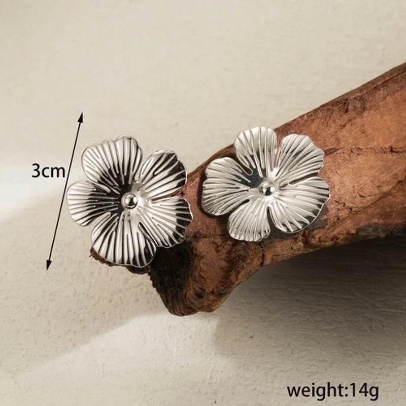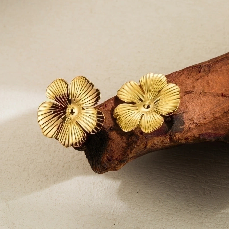 3 Pieces Classic Style Solid Color Flower Plating Inlay Stainless Steel Artificial Pearls 14K Gold Plated Drop Earrings