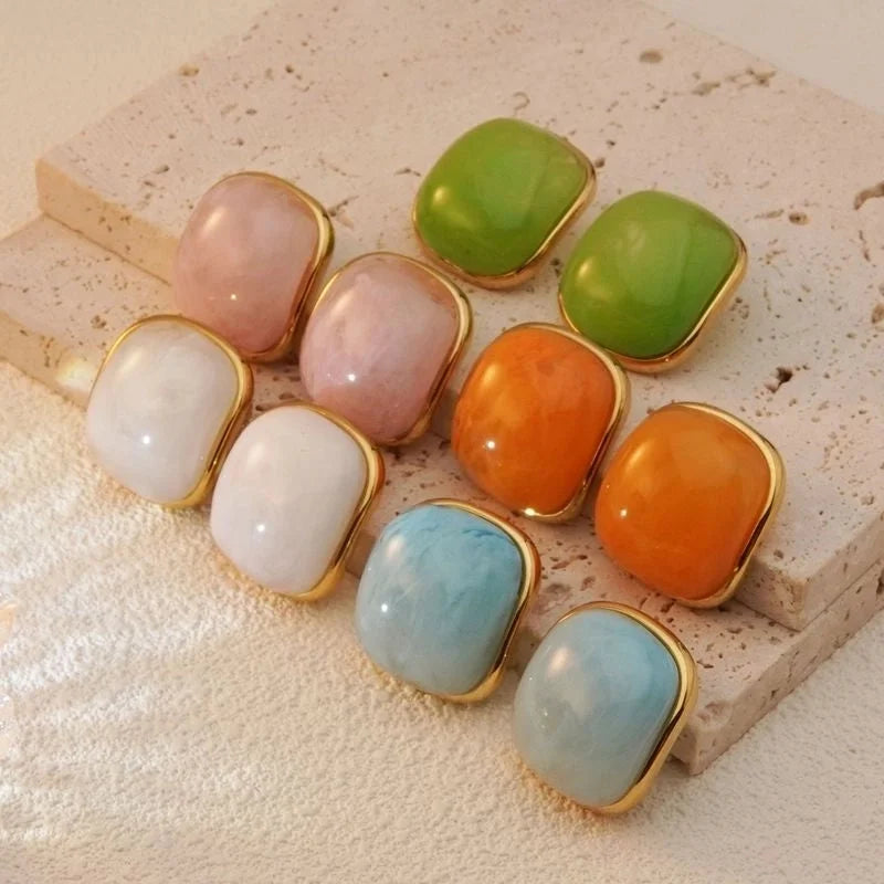 1 Pair Classic Style Streetwear Quadrilateral Three-dimensional 304 Stainless Steel Resin 18K Gold Plated Ear Studs