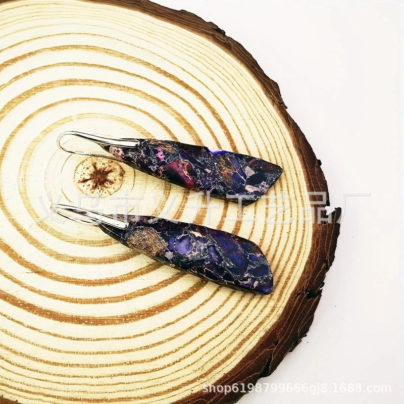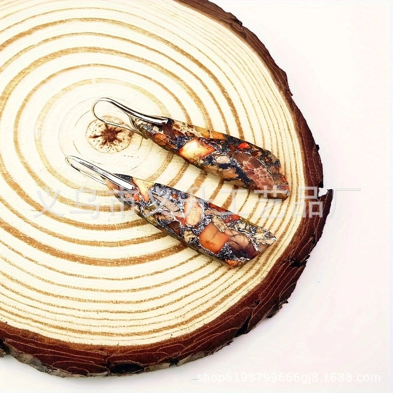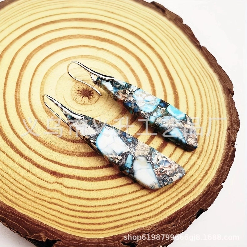 1 Pair Classic Style Water Droplets Patchwork Agate Drop Earrings