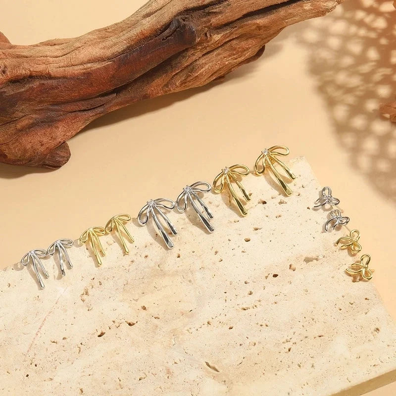 1 Pair Elegant Bow Knot Copper 14K Gold Plated Ear Studs