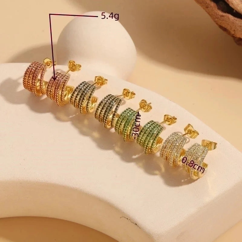 1 Pair Elegant Classic Style C Shape Asymmetrical Plating Inlay Copper Zircon 14k Gold Plated Earrings
