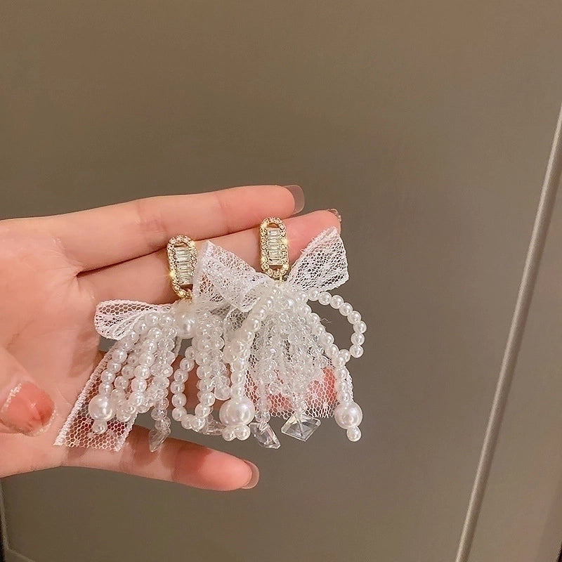 1 Pair Elegant Lady Sweet Geometric Heart Shape Bow Knot Inlay Alloy Artificial Pearls Zircon Earrings
