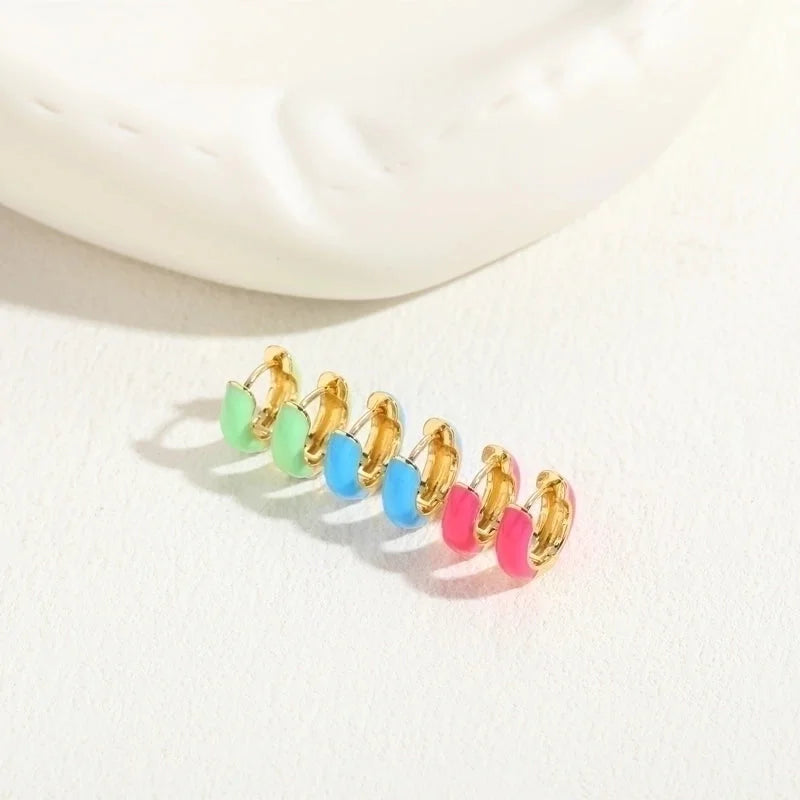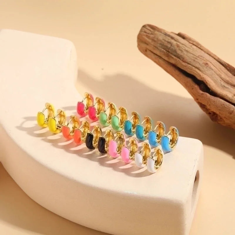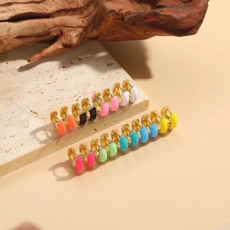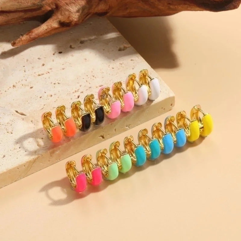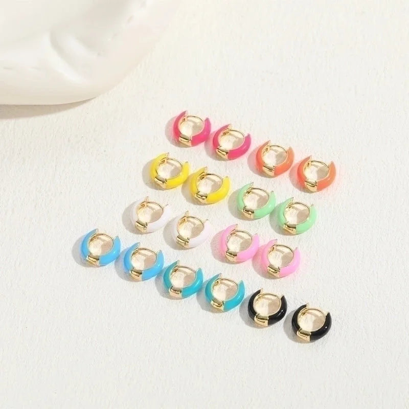 1 Pair Elegant Luxurious Classic Style Solid Color Enamel Plating Copper 14k Gold Plated Hoop Earrings