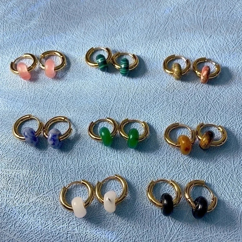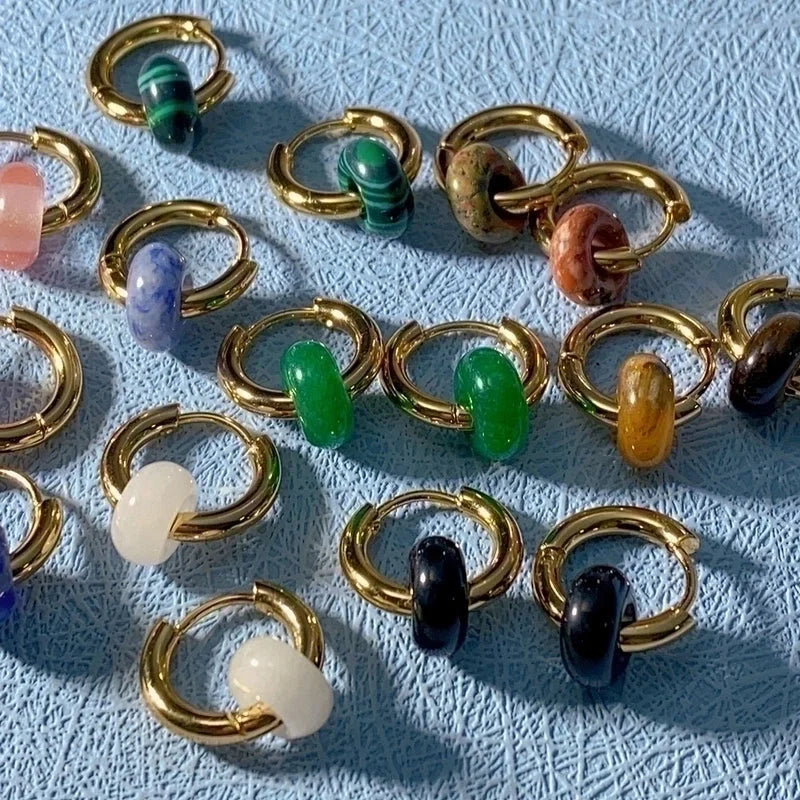 1 Pair Elegant Round Plating 302 Stainless Steel Natural Stone 18K Gold Plated Earrings