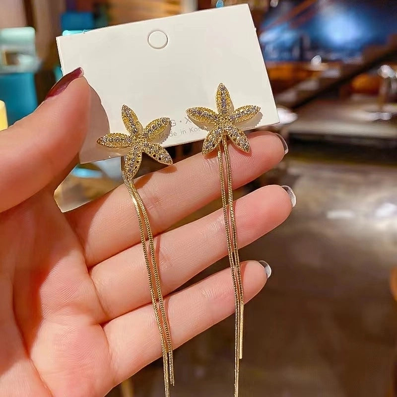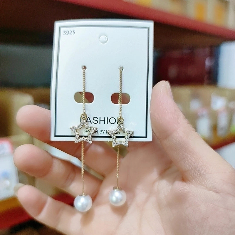 2 Pieces Elegant Star Tassel Heart Shape Inlay Alloy Artificial Pearls Rhinestones Glass Earrings