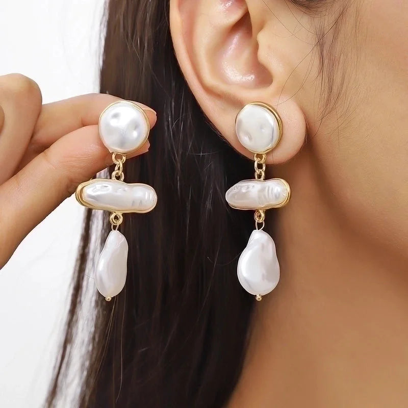 1 Pair Elegant Streetwear Geometric Plating Imitation Pearl Drop Earrings