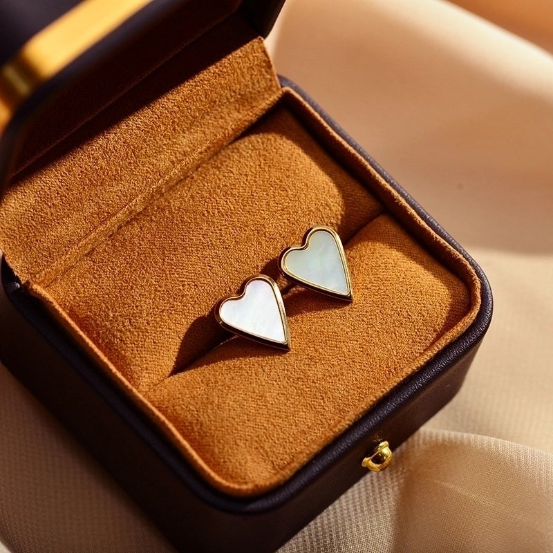 1 Pair Elegant Stripe Heart Shape Plating Inlay Copper Malachite Shell Gold Plated Ear Studs