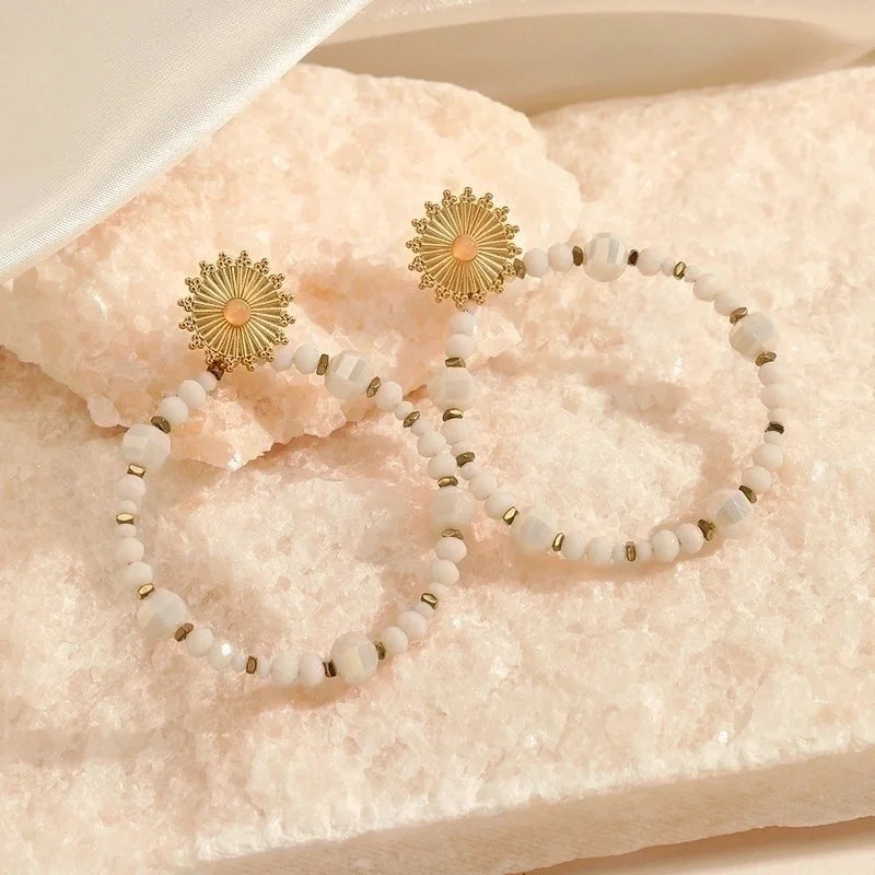 1 Pair Ethnic Style Circle Sun Beaded Handmade Inlay Stainless Steel Natural Stone Drop Earrings