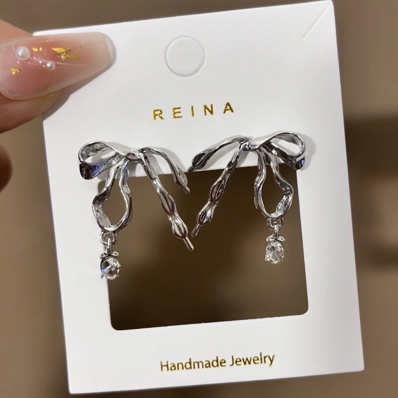 1 Pair Fashion Leaf Flower Bow Knot Imitation Pearl Alloy Rhinestones Earrings