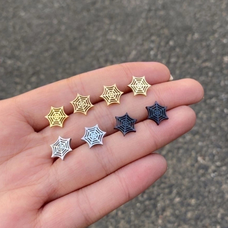 1 Pair Halloween Fashion Spider Web Plating Titanium Steel 18K Gold Plated Ear Studs