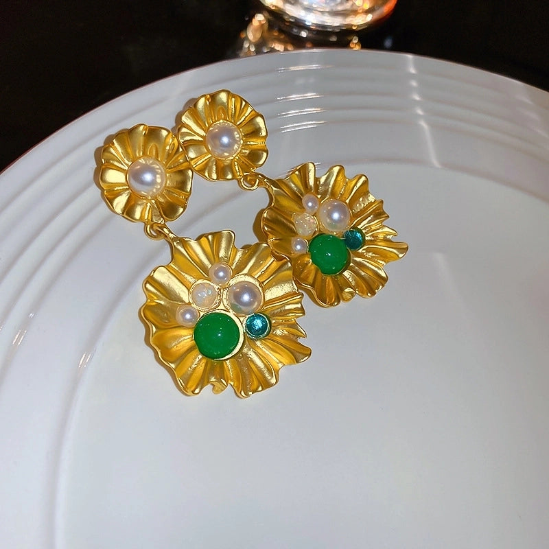 1 Pair Glam Geometric Plating Inlay Copper Artificial Pearls Rhinestones Drop Earrings