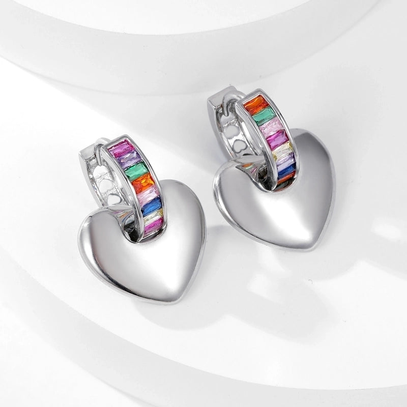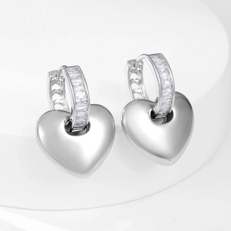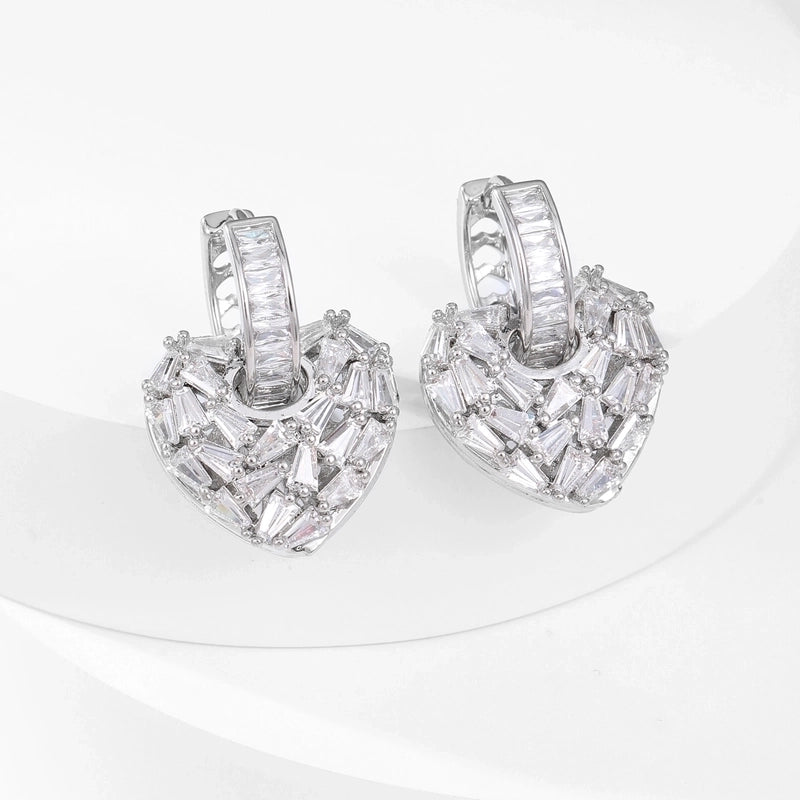 1 Pair Glam Shiny Heart Shape Copper Zircon K Gold Plated Drop Earrings