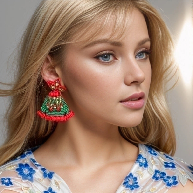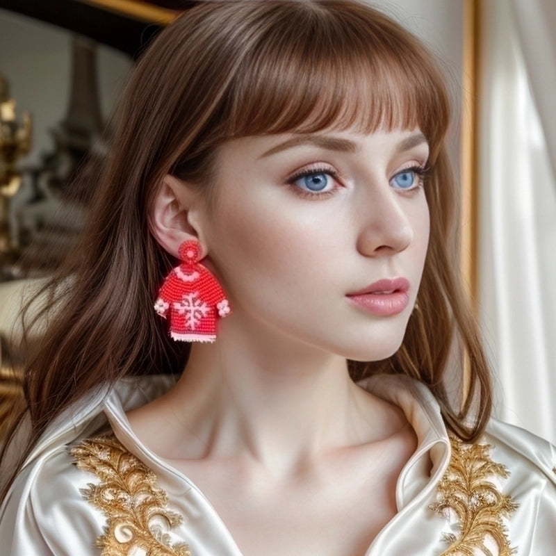 1 Pair Handmade House Snowman Handmade Beaded Glass Drop Earrings
