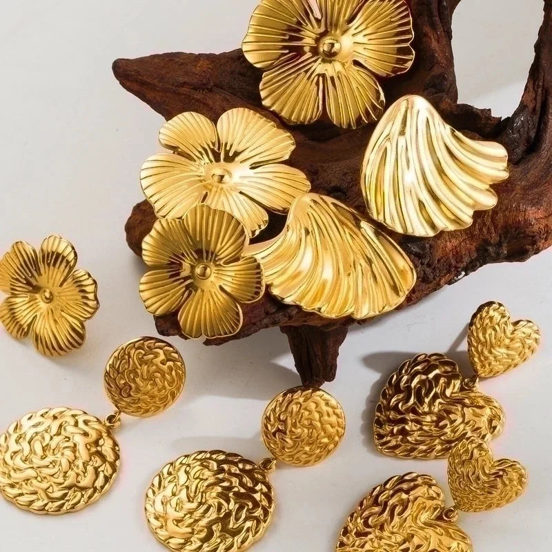 1 Pair Ig Style Casual Geometric Heart Shape Flower Plating Stainless Steel 18k Gold Plated Drop Earrings Ear Studs