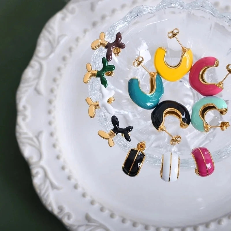 1 Pair IG Style Casual Modern Style Geometric Enamel Epoxy Plating Titanium Steel 18K Gold Plated Ear Studs