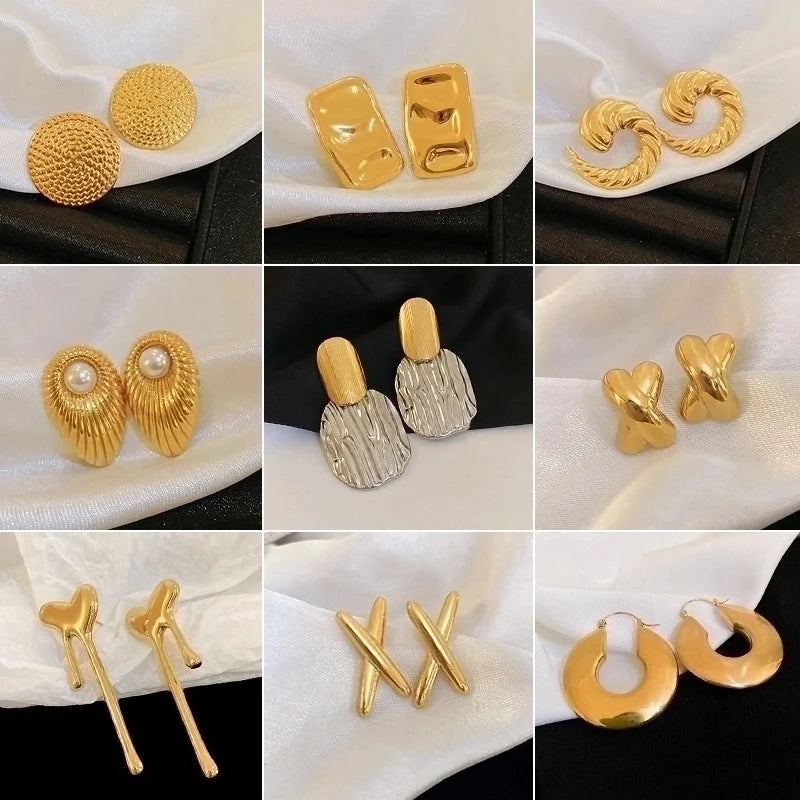 1 Pair IG Style French Style Classic Style Geometric Round Heart Shape Plating Titanium Steel Drop Earrings Earrings Ear Studs