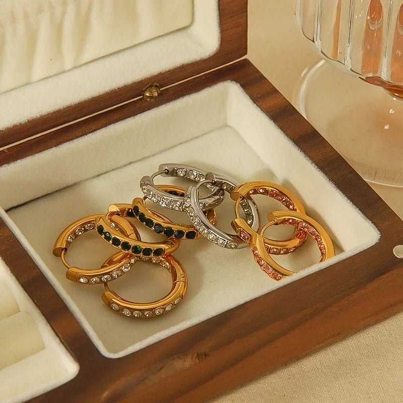 1 Pair IG Style Geometric Plating Inlay 304 Stainless Steel Zircon 18K Gold Plated Earrings
