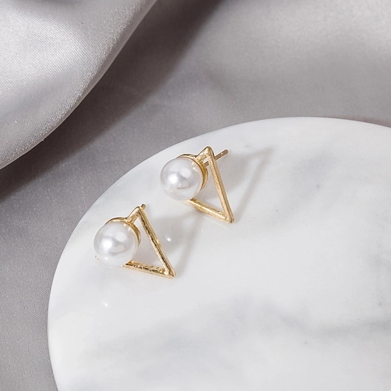 1 Pair Korean Style Triangle Alloy Pearl Gold Plated Silver Plated Ear Studs