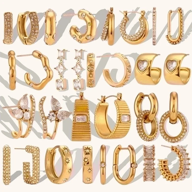 1 Pair Lady Geometric Plating Inlay Stainless Steel Zircon 18k Gold Plated Earrings Ear Studs