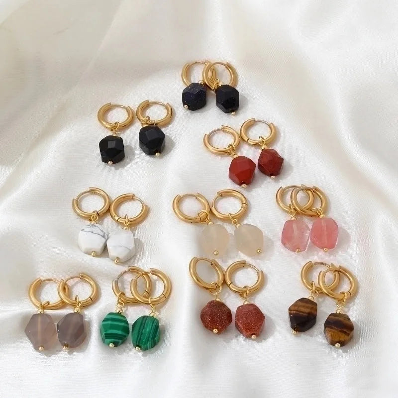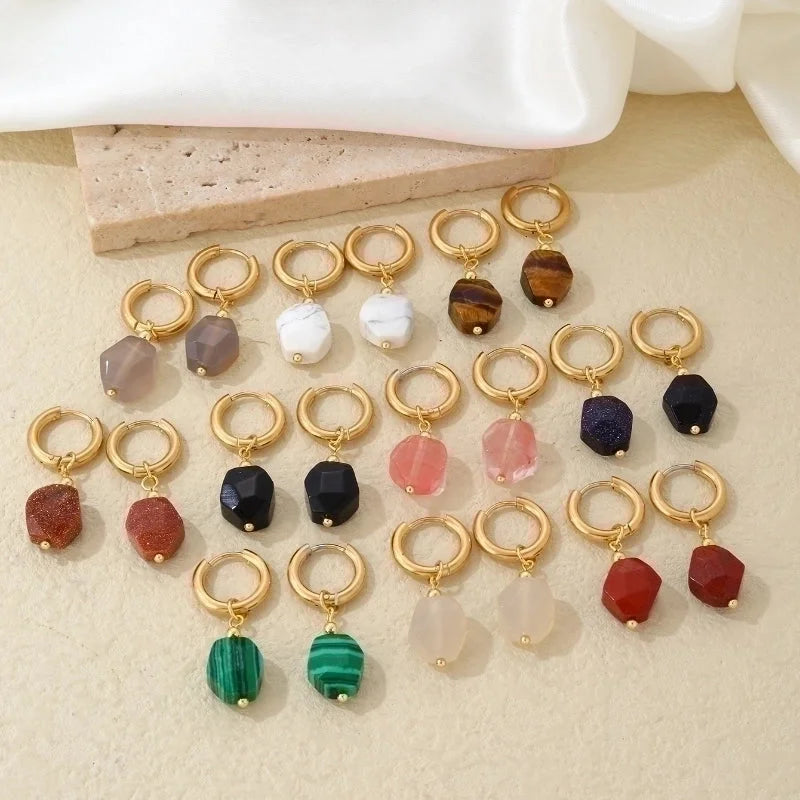 1 Pair Lady Minimalist Commute Geometric 304 Stainless Steel Natural Stone Drop Earrings