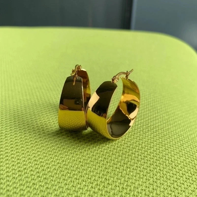 1 Pair Minimalist Classic Style Solid Color Plating 304 Stainless Steel 18K Gold Plated Hoop Earrings