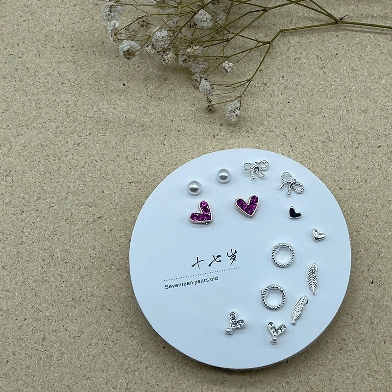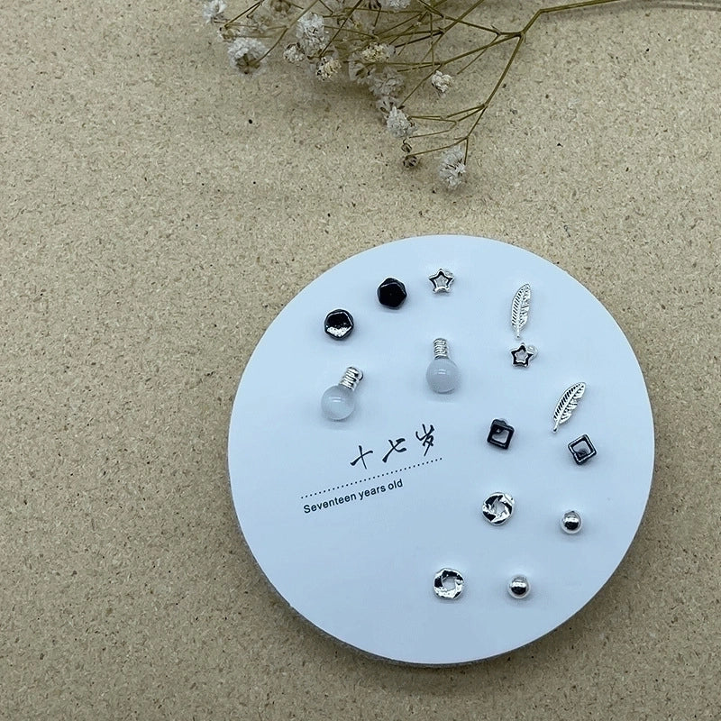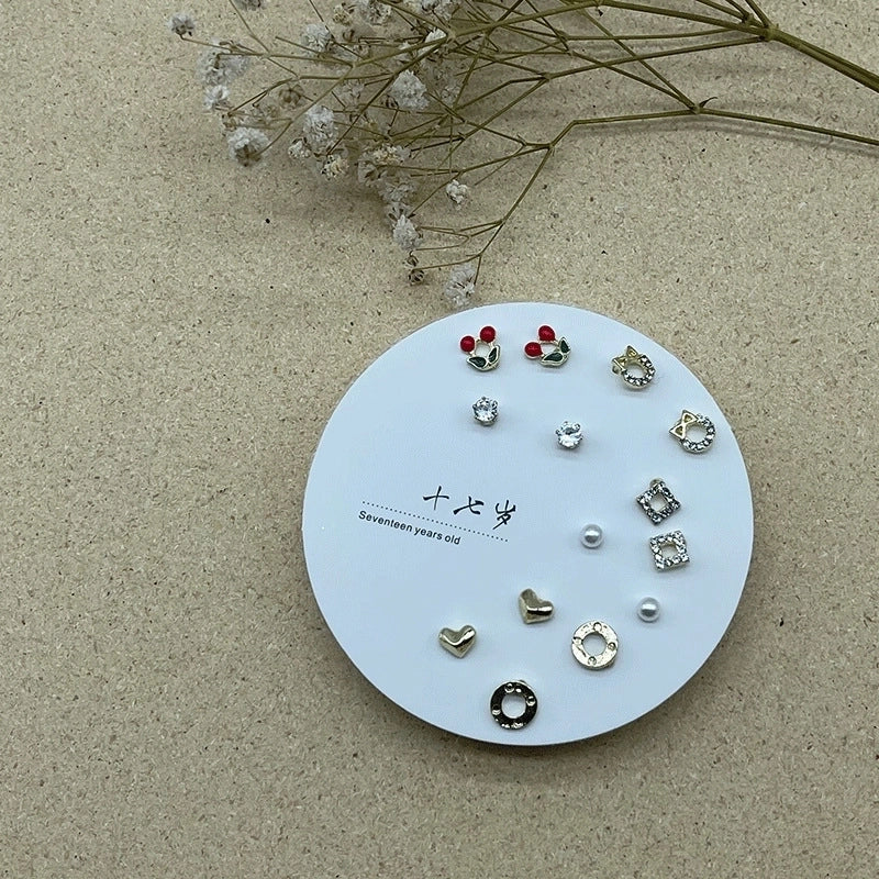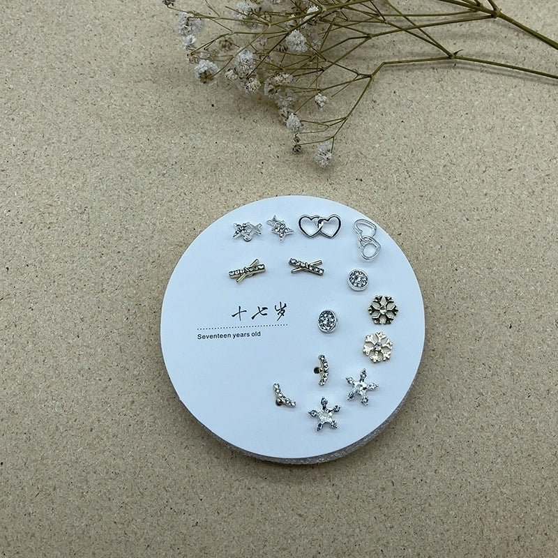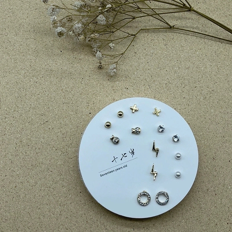 2 Pieces Minimalist Commute Geometric Inlay Copper Zircon Drop Earrings