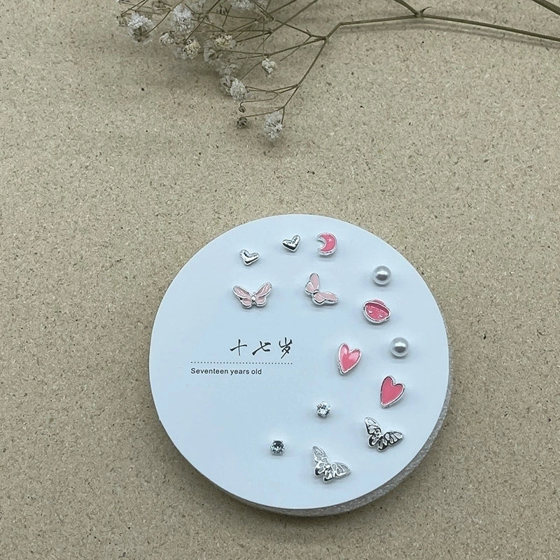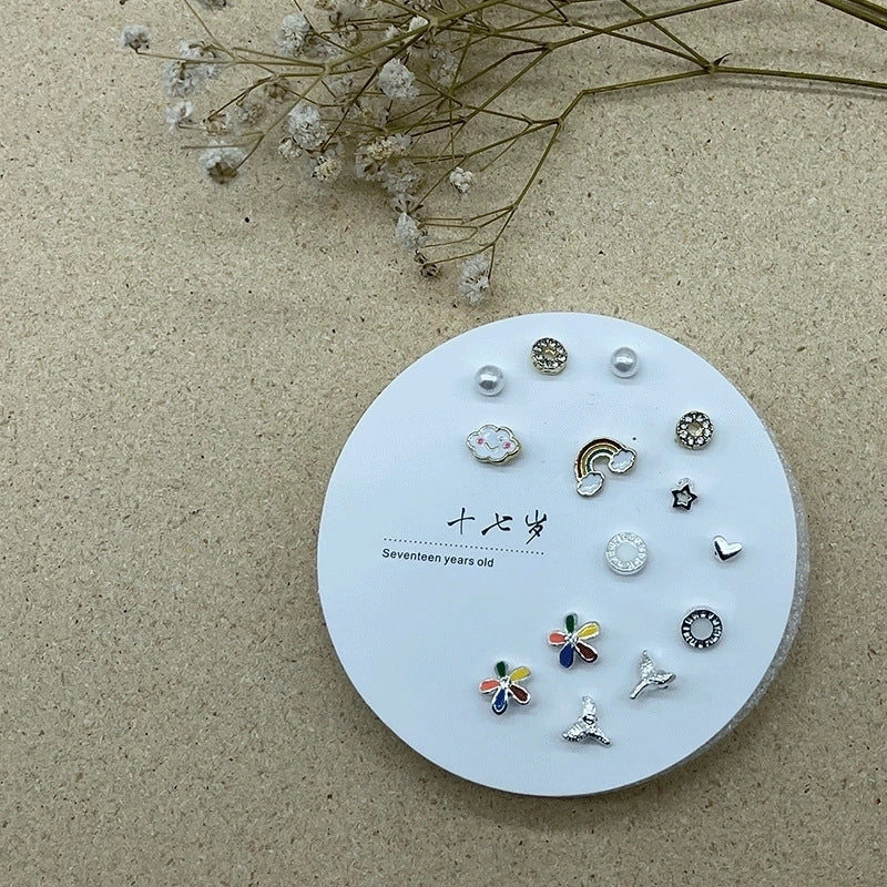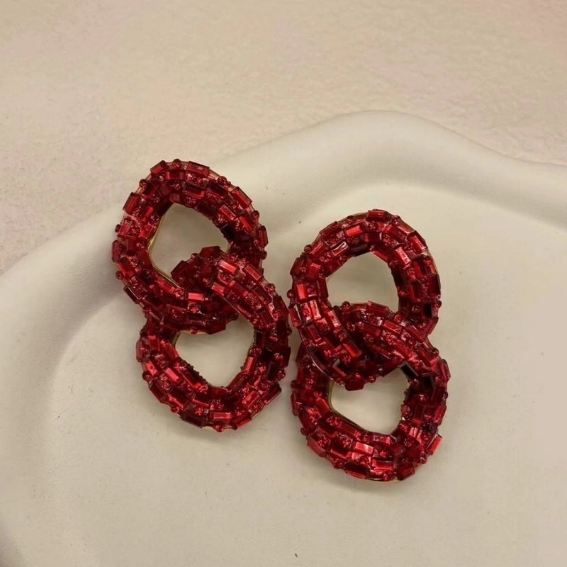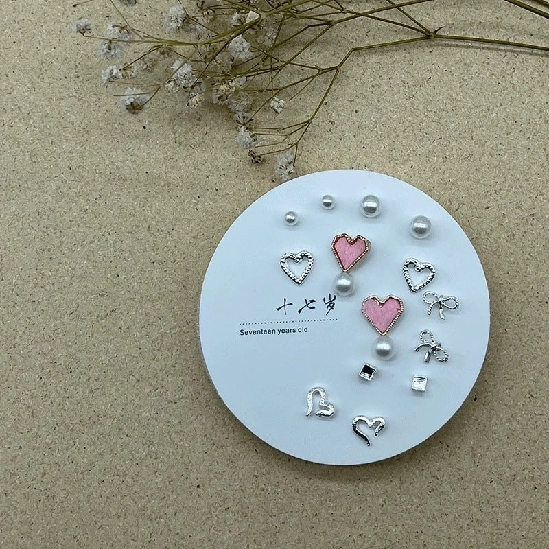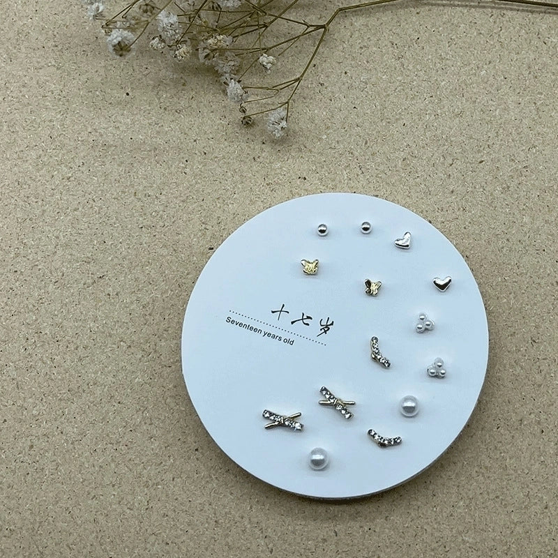 2 Pieces Minimalist Commute Geometric Inlay Copper Zircon Drop Earrings