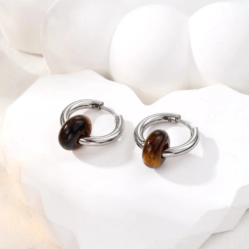 1 Pair Minimalist Geometric 201 Stainless Steel Natural Stone Drop Earrings