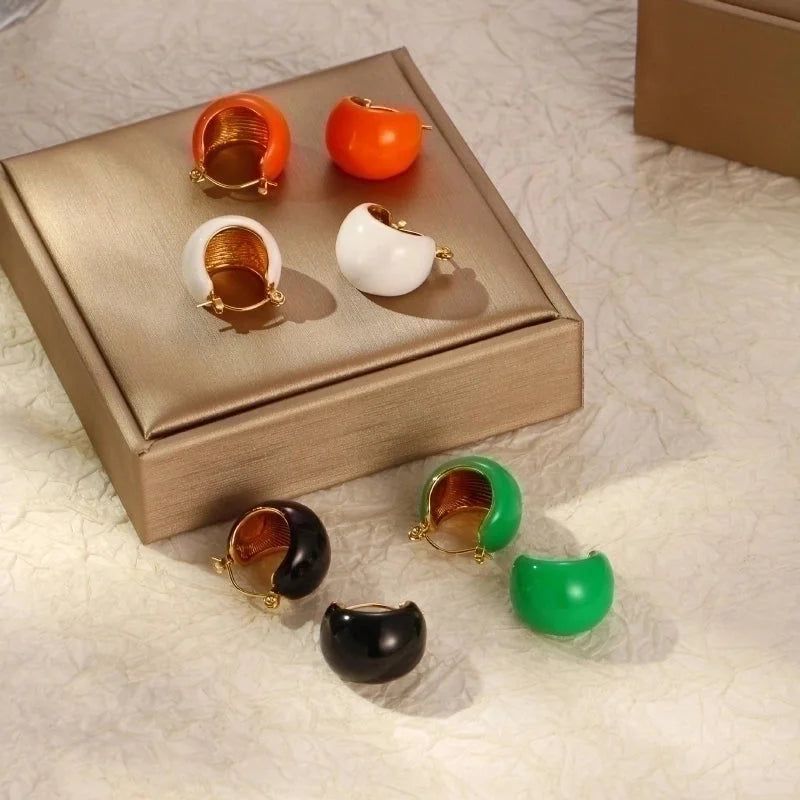 1 Pair Minimalist Geometric Solid Color Enamel 304 Stainless Steel 18K Gold Plated Hoop Earrings
