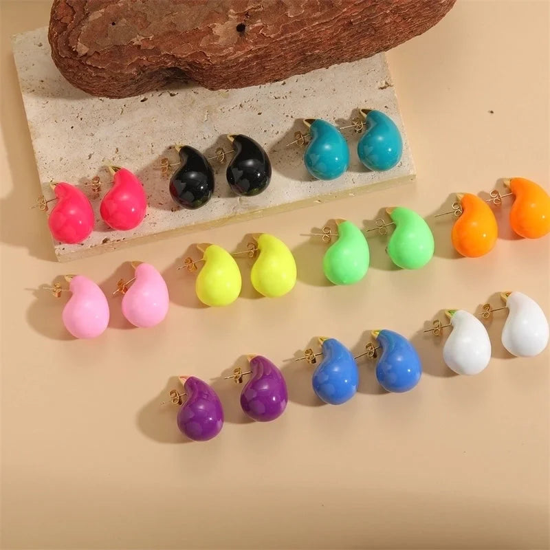1 Pair Minimalist Water Droplets Epoxy Plating Brass 14k Gold Plated Ear Studs