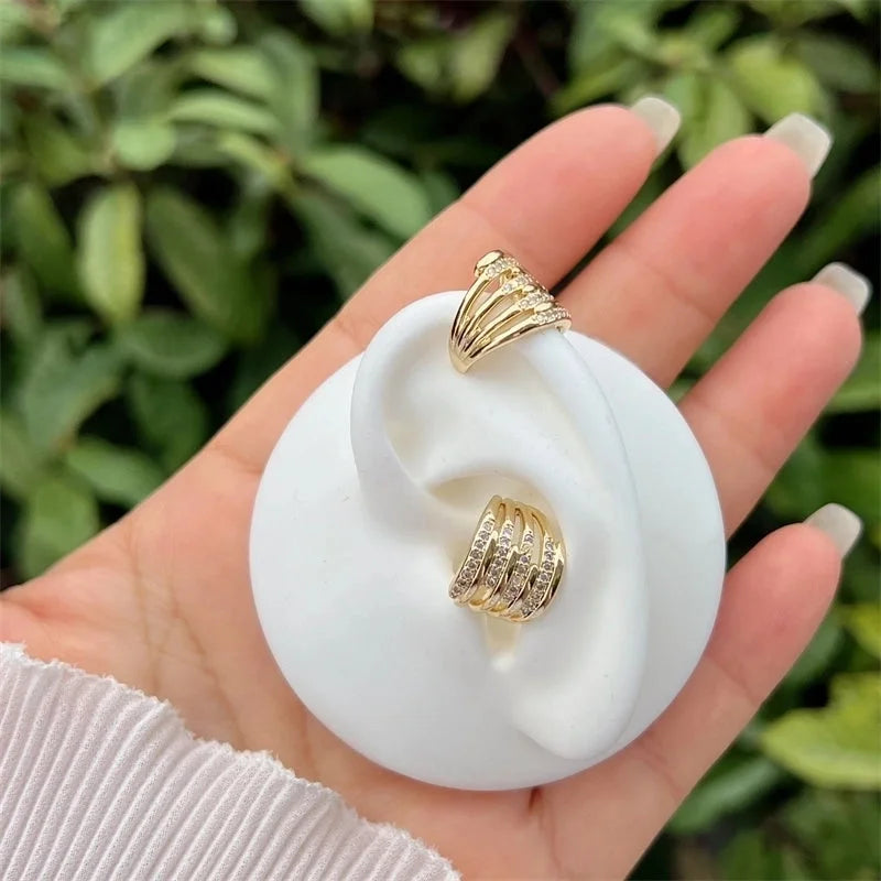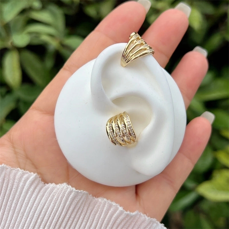 1 Pair Modern Style Minimalist Streetwear Geometric Inlay Copper Zircon 18K Gold Plated Ear Cuffs