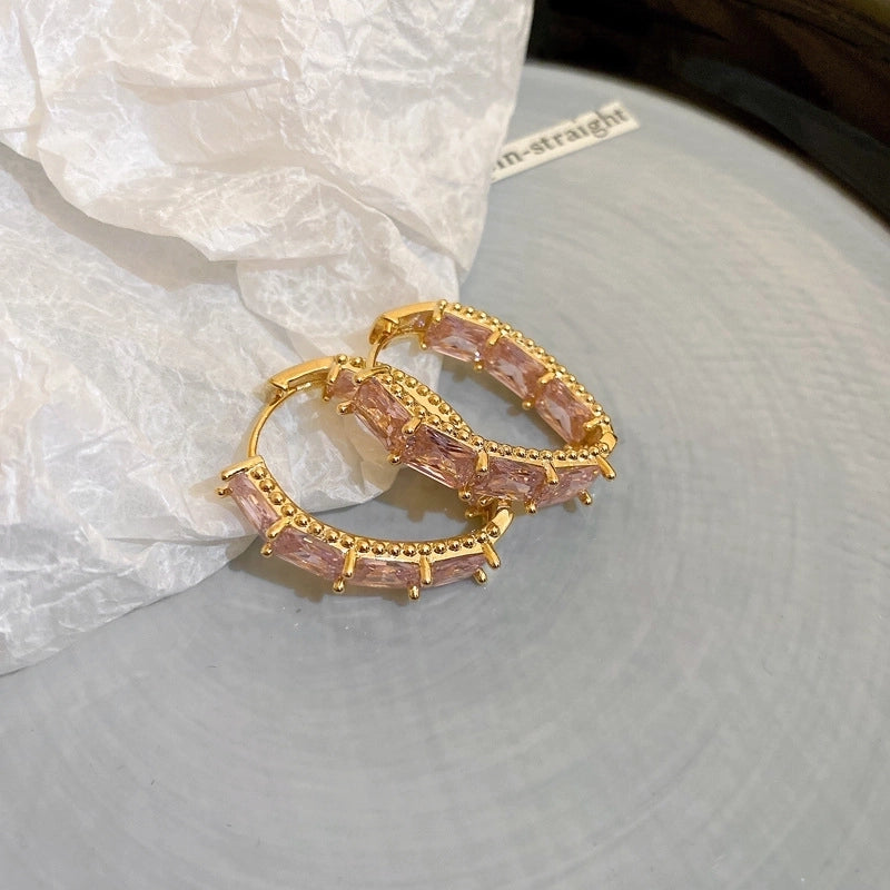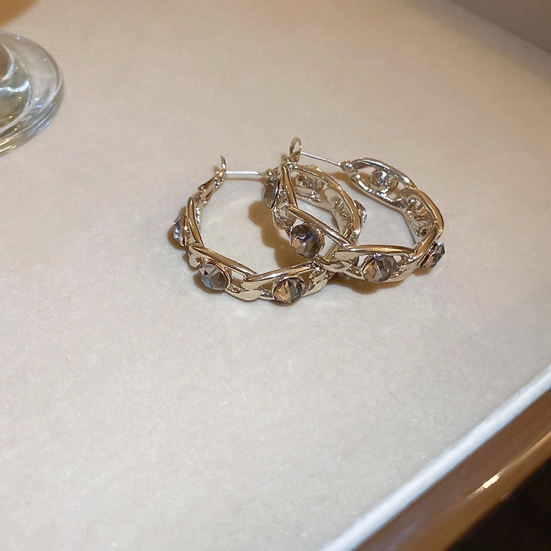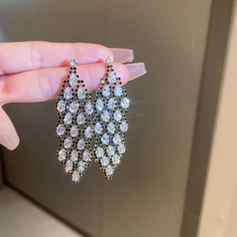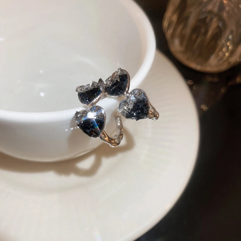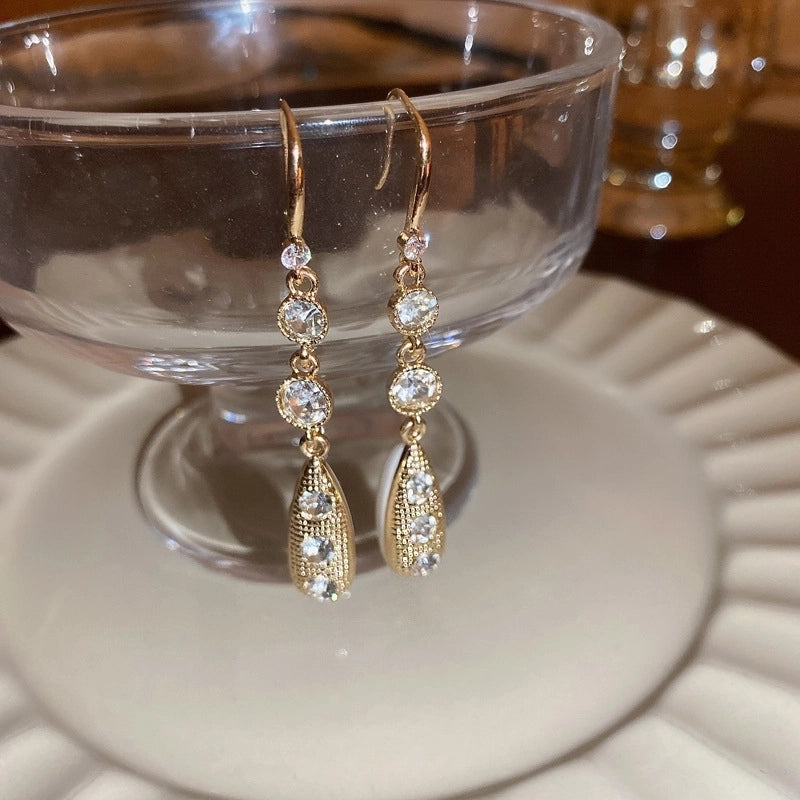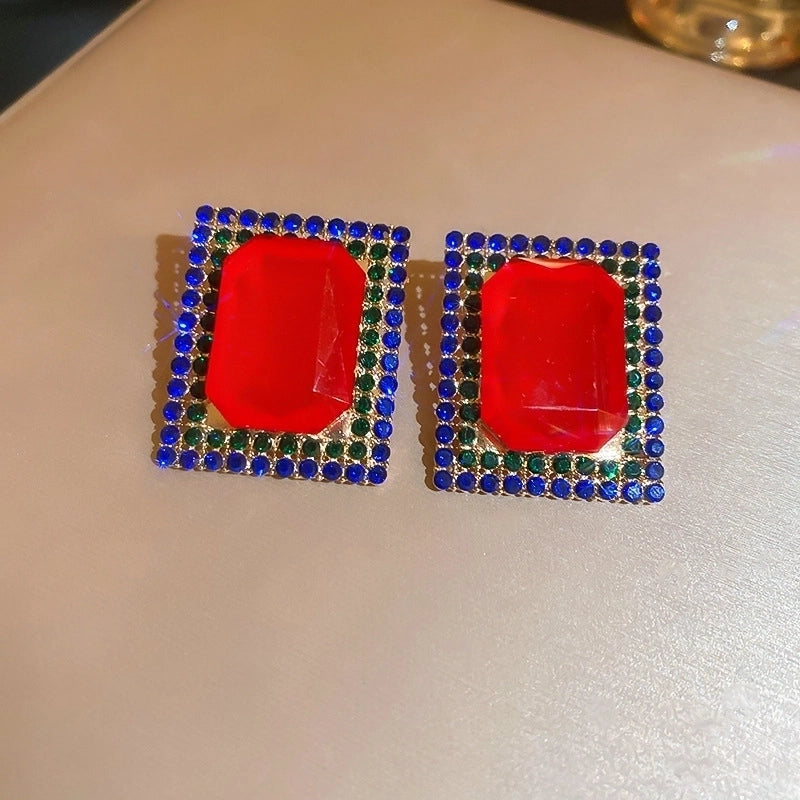 1 Pair Retro Color Block Heart Shape Pleated Inlay Copper Rhinestones Drop Earrings