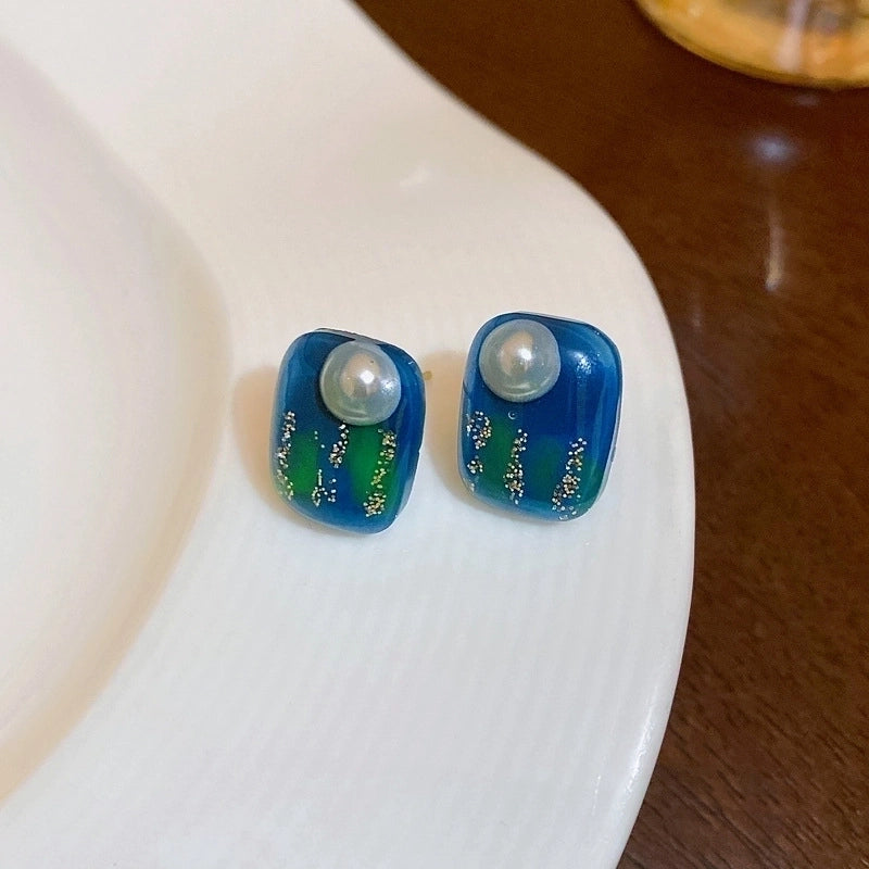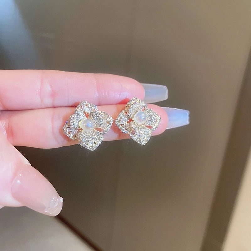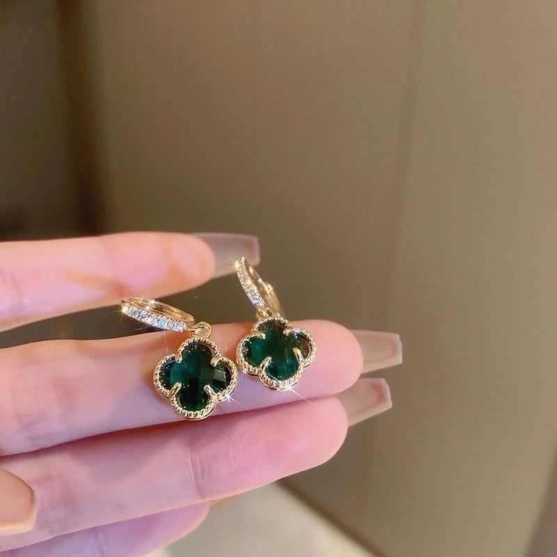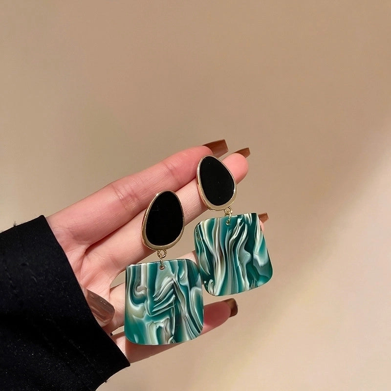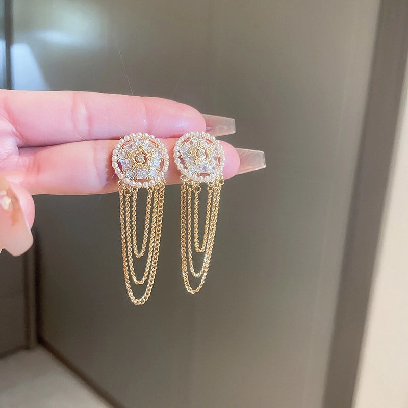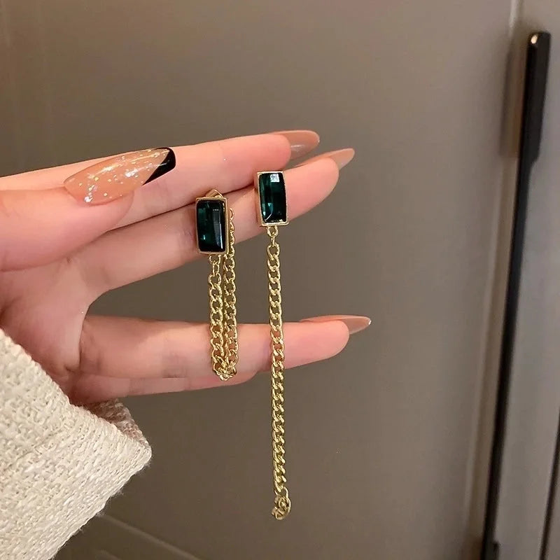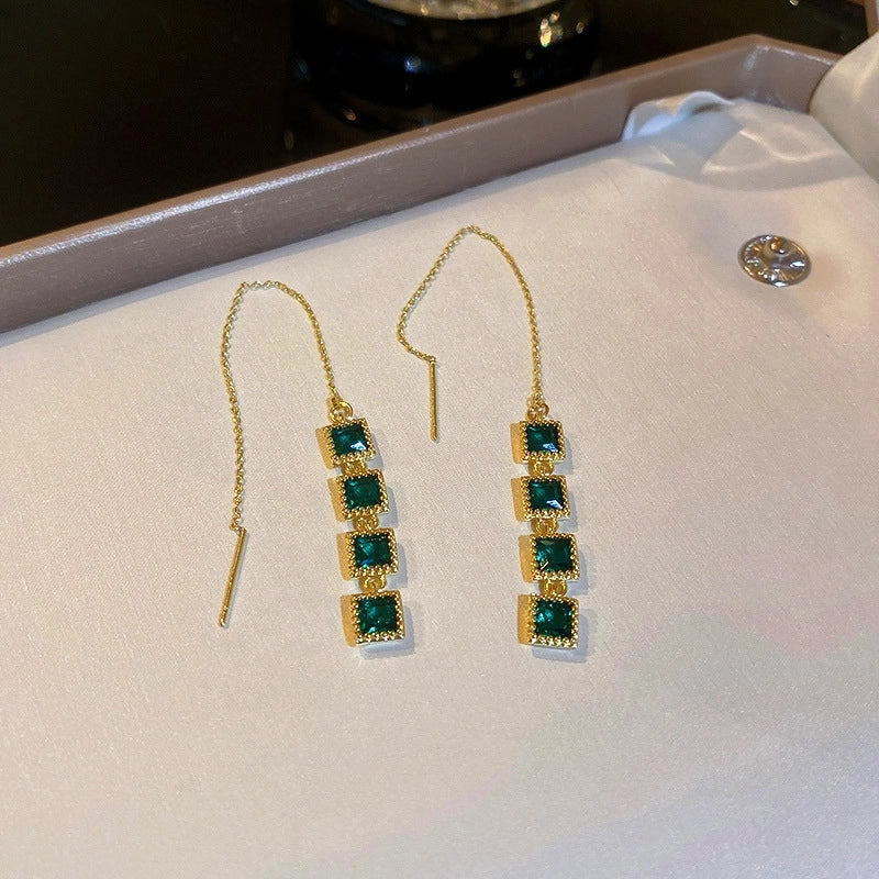 1 Pair Retro Color Block Heart Shape Pleated Inlay Copper Rhinestones Drop Earrings