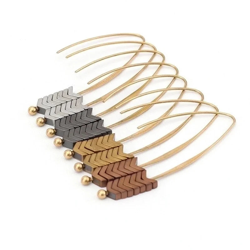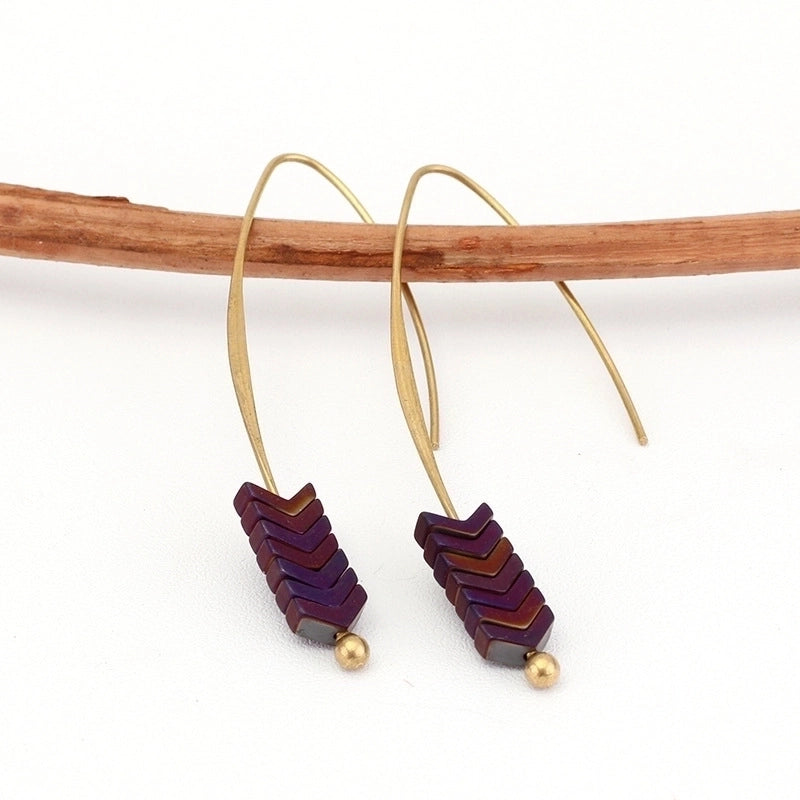 1 Pair Retro Letter Plating Alloy Labradorite Haematite Drop Earrings