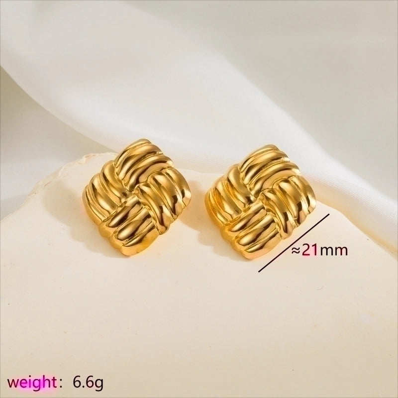 1 Pair Minimalist Classic Style Argyle 304 Stainless Steel 14K Gold Plated Stainless Steel Earrings