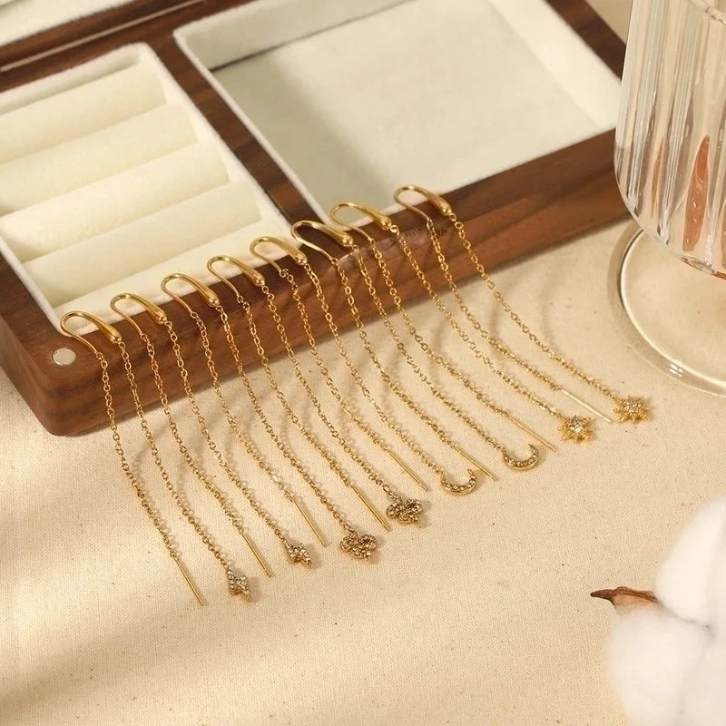 1 Pair Minimalist Classic Style Hexagram Moon Polishing Plating Inlay 304 Stainless Steel Zircon 18K Gold Plated Drop Earrings