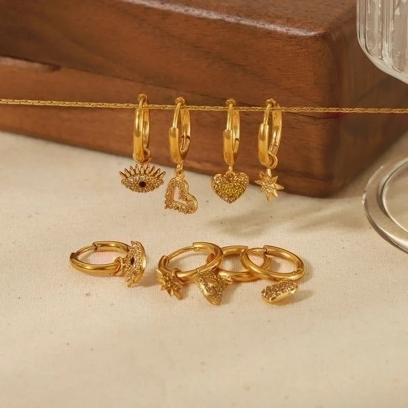 1 Pair Streetwear Hexagram Heart Shape Eye Polishing Plating Inlay 304 Stainless Steel Zircon Drop Earrings