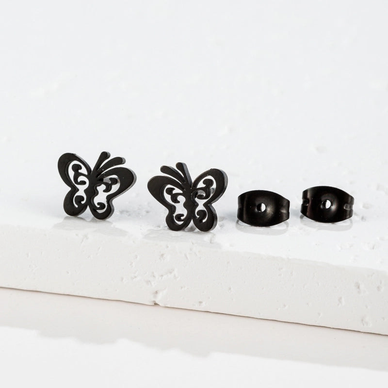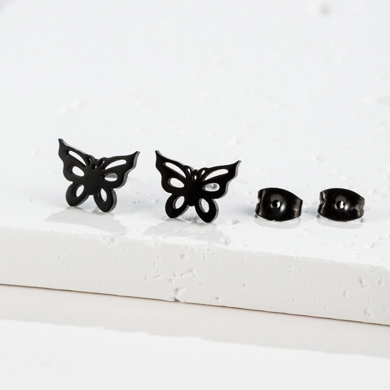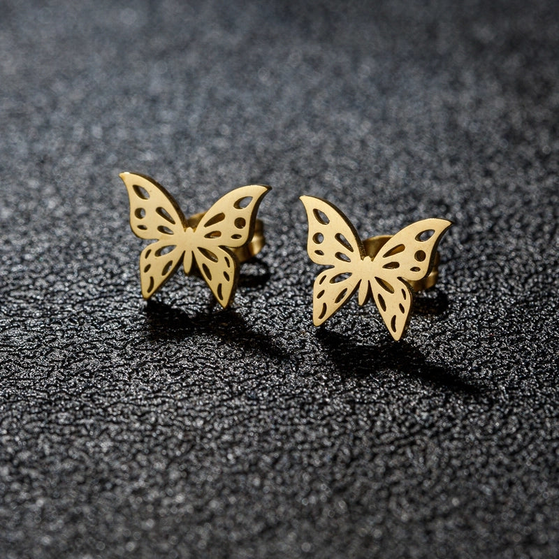 1 Pair Sweet Minimalist Artistic Heart Shape Butterfly Polishing 304 Stainless Steel 18K Gold Plated Ear Studs