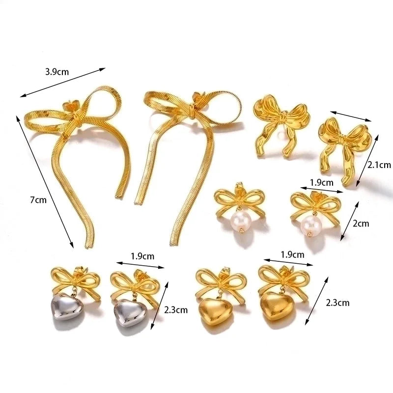 1 Pair Sweet Minimalist Heart Shape Bow Knot Polishing Pearl 304 Stainless Steel Artificial Pearls 18K Gold Plated Drop Earrings