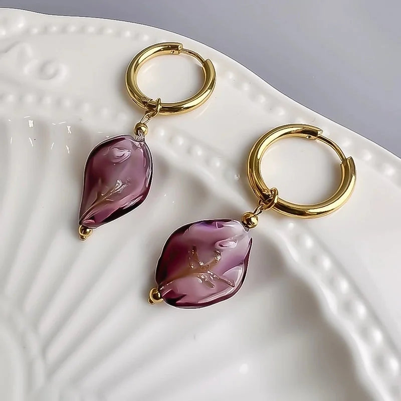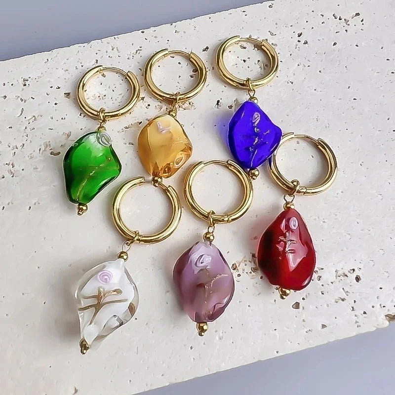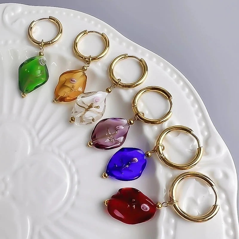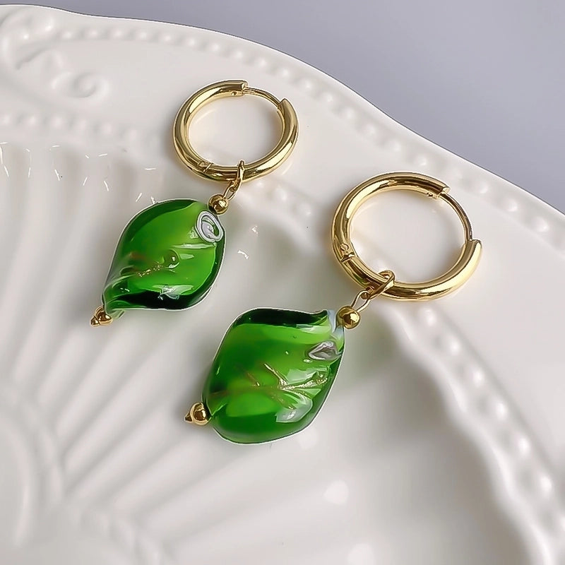 1 Pair Sweet Waves Plating Stainless Steel Glass 18k Gold Plated Drop Earrings