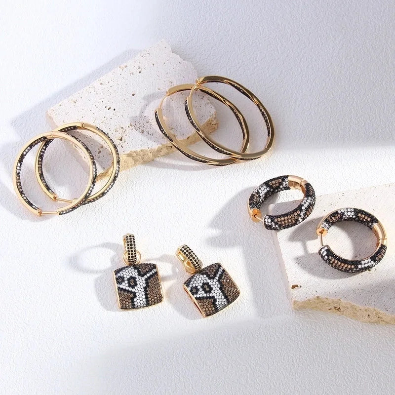 1 Pair Vintage Style Exaggerated Luxurious Circle Leopard Inlay Copper Zircon 18K Gold Plated Gold Plated Earrings