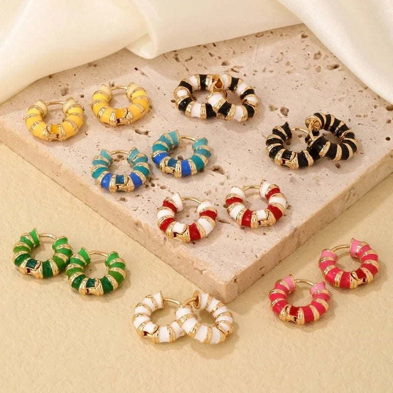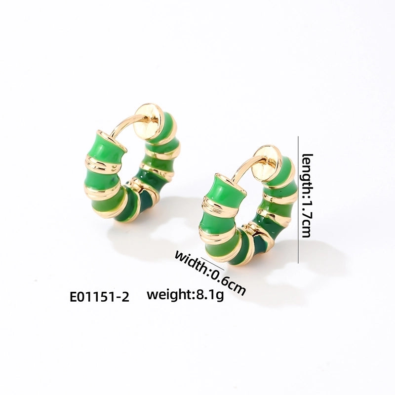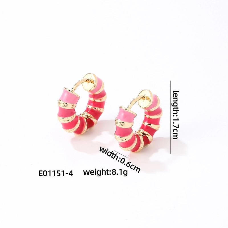 1 Pair Vintage Style Sweet Minimalist Geometric Stripe Enamel Plating Stainless Steel Earrings