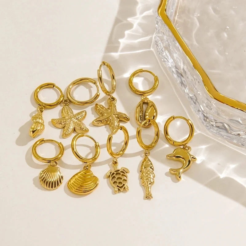 3 Pieces Beach Tortoise Starfish Shell Plating 304 Stainless Steel 14K Gold Plated Earrings