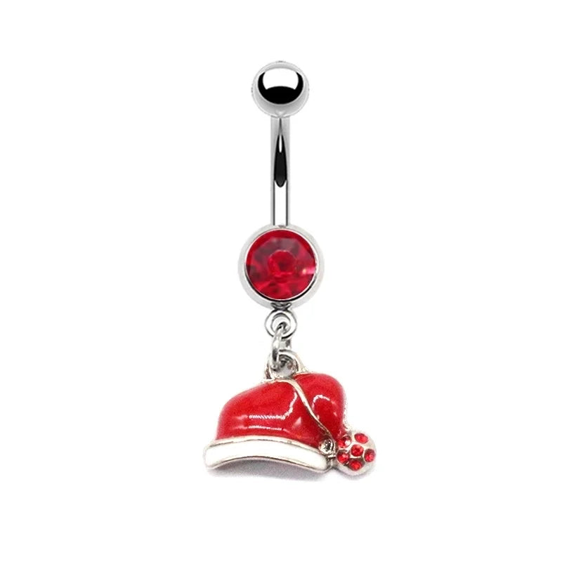 1 Piece Belly Rings Minimalist Christmas Tree Snowflake Stainless Steel Copper Plating Inlay Rhinestones