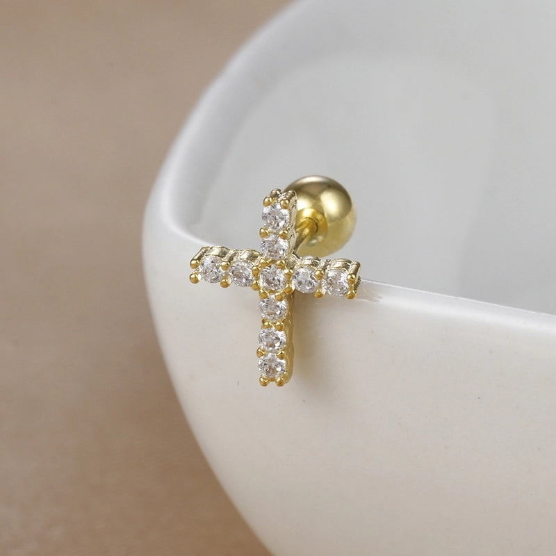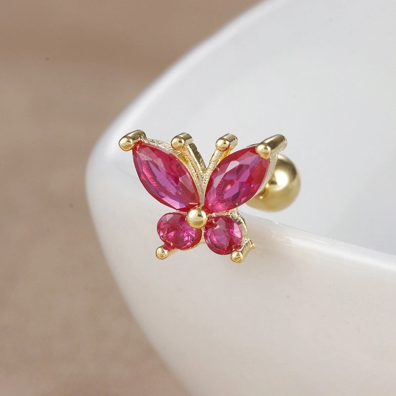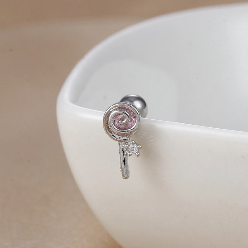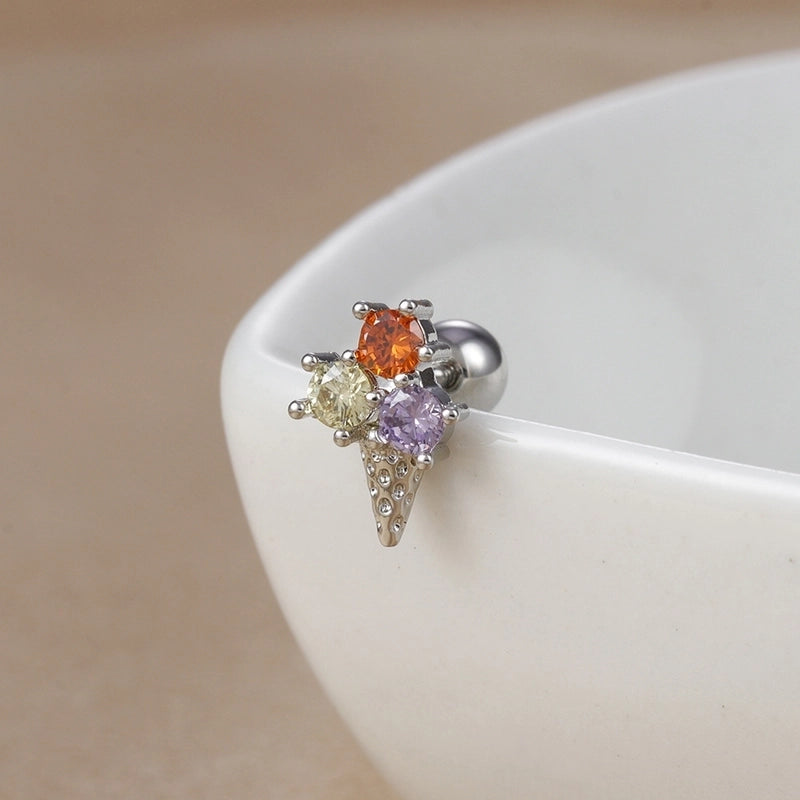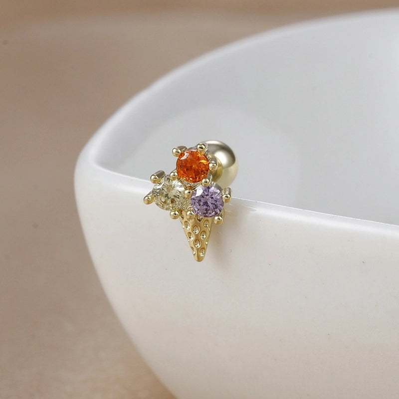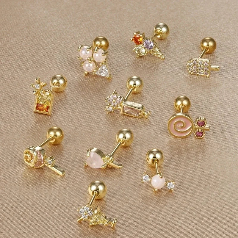 1 Piece Ear Cartilage Rings & Studs IG Style Ice Cream Heart Shape Candy 304 Stainless Steel Inlay Zircon 18K Gold Plated Ear Cartilage Rings & Studs